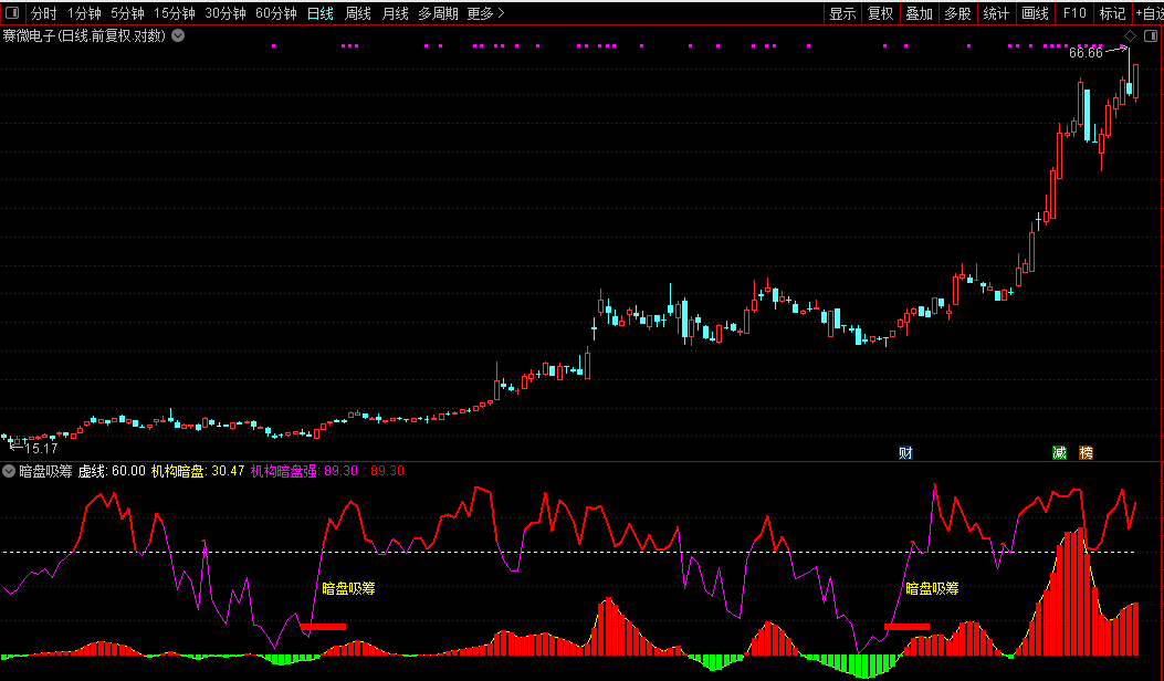 机构暗盘强度上60是吸筹最后阶段,可以关注了。