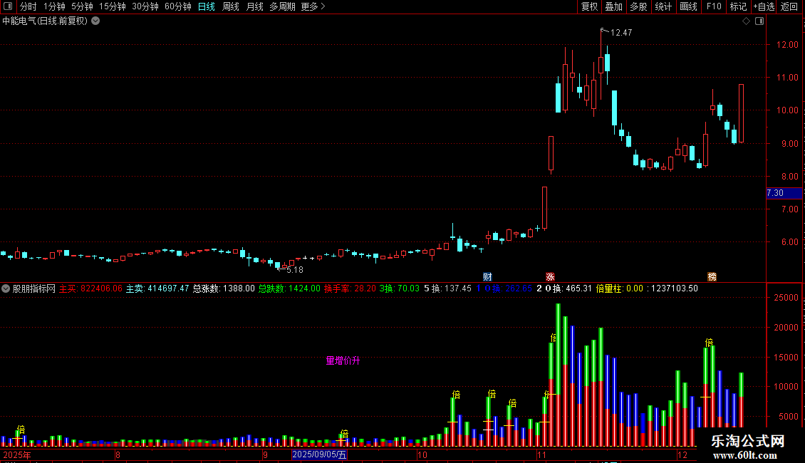 DRAWTEXT(倍量柱,VOL*1.05,'倍'),COLORYELLOW;