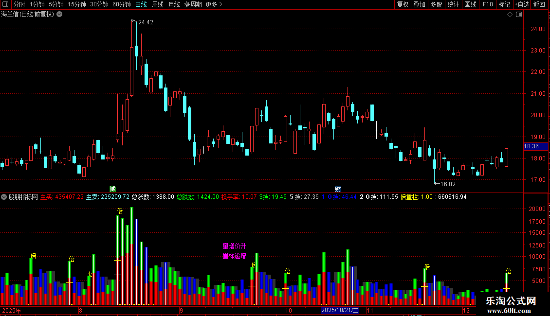 TJ2:=H=L AND C<REF(C,1) OR C<REF(C,5) OR C<REF(C,9) OR C<REF(C,17);