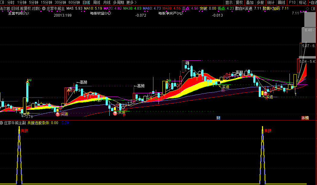采用5、10、20、30、60、90日六条核心均线,通过不同颜色清晰区分