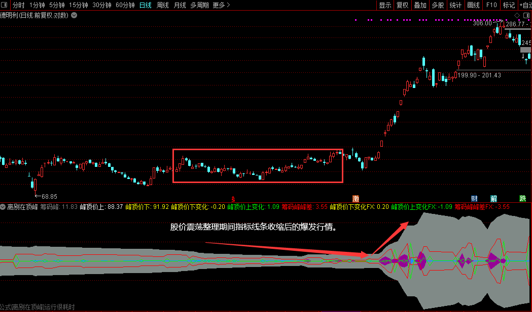 这个【离别在顶峰】副图指标是筹码类基础指标,看起来很简单,但指标的不断优化改进就是由简入繁、由易到难的过程,每一个基础指标都是指标创作的源泉,也许能给你带来不一样的体验和启发。