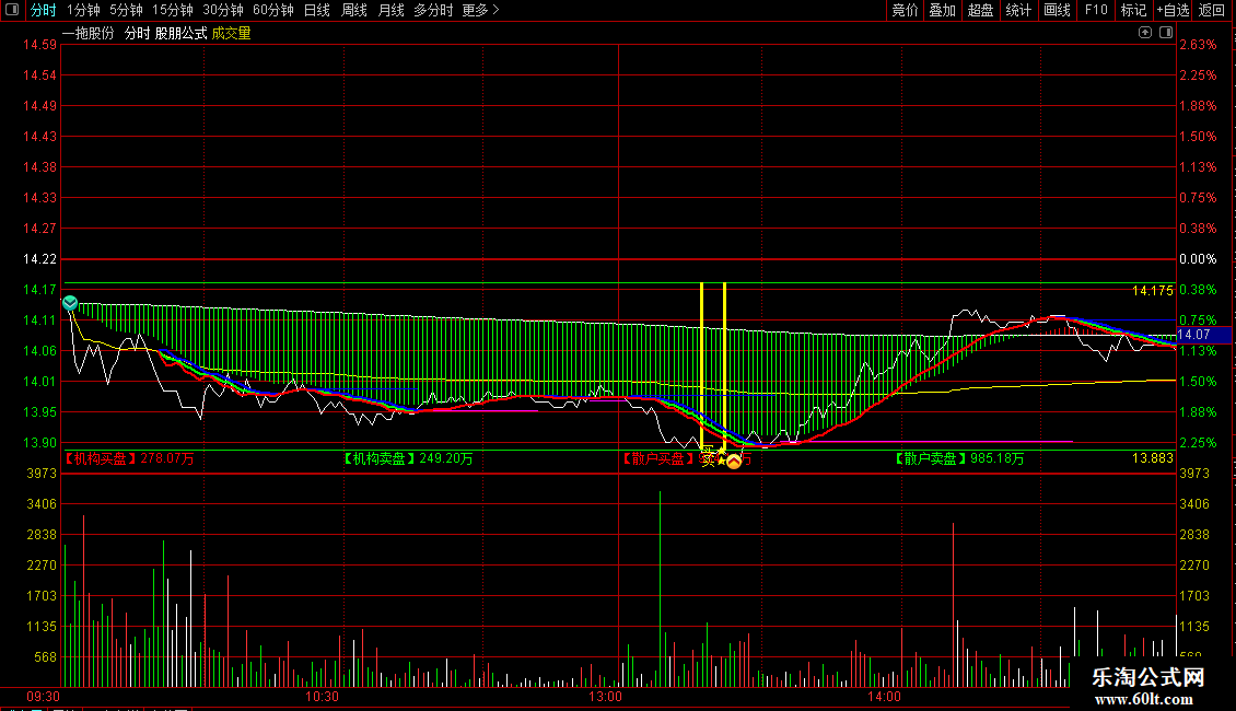 STICKLINE(VAR14>=0,多方,VAR13,2,0),COLORYELLOW,NODRAW;