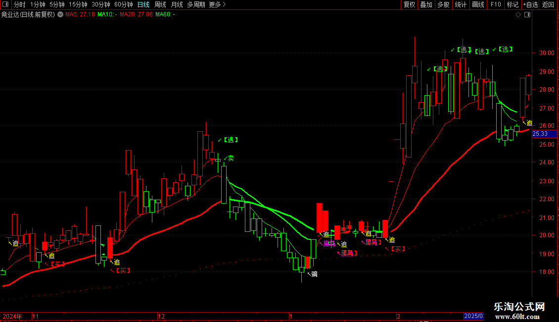 DRAWTEXT(CROSS(BF3,AF3) AND H>中中顶 AND H>中顶,H*1.03,'↙【逃】'),COLORGREEN;