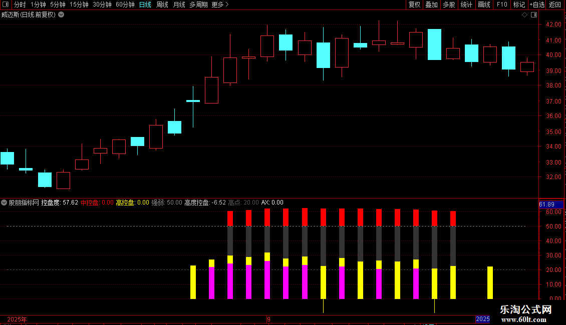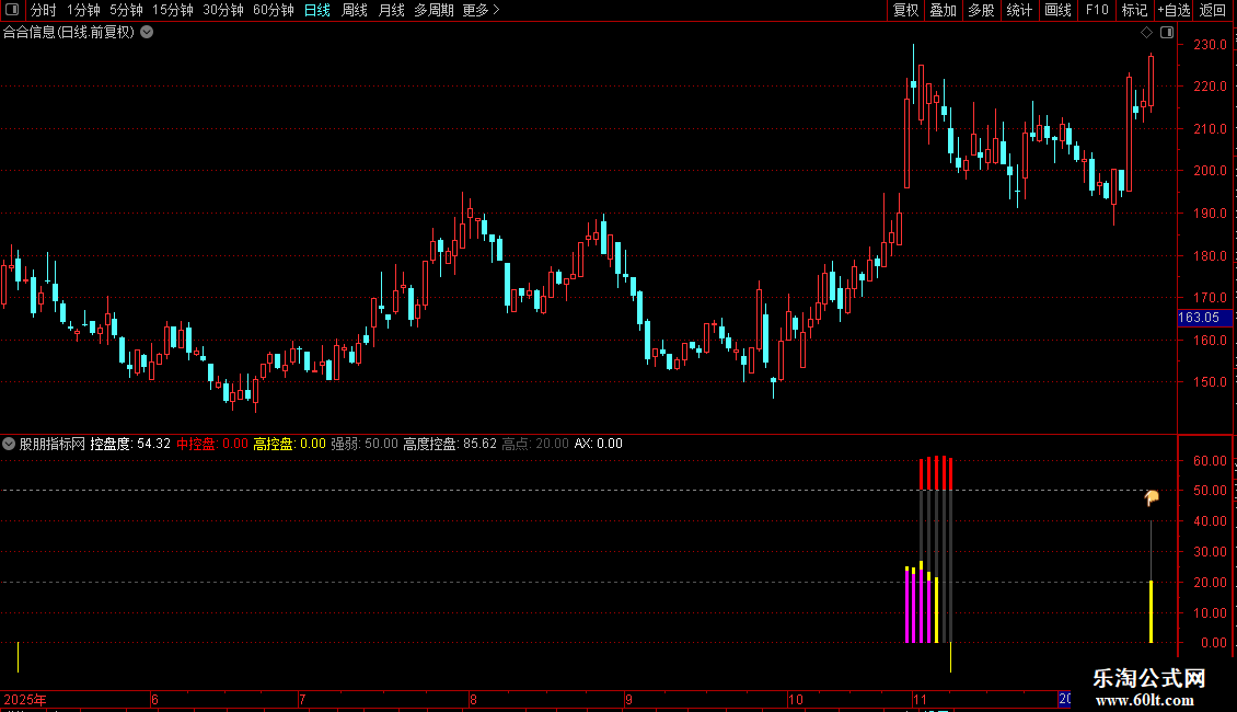 使用方法:适用于日线级别,重点关注“控盘度”突破60/80阈值、高度控盘值突增及底部黄色信号柱。结合量能与价格形态,可有效过滤假信号,提升对主力操盘节奏的把握能力。
