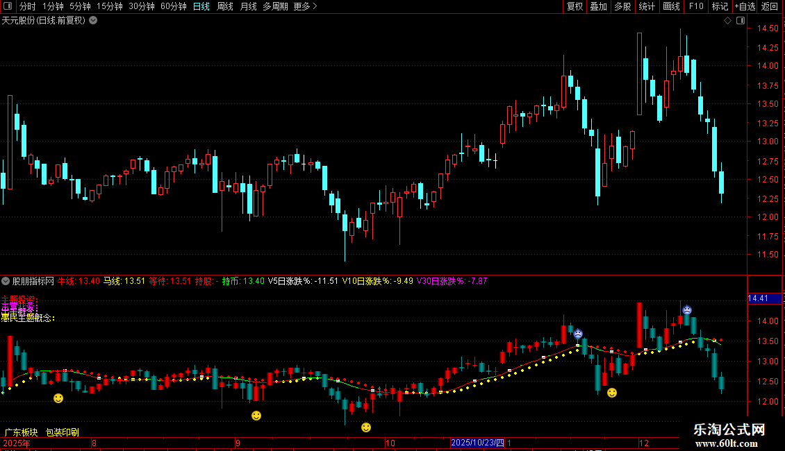 马线:MA(牛线,5),COLORYELLOW,LINETHICK4,POINTDOT;