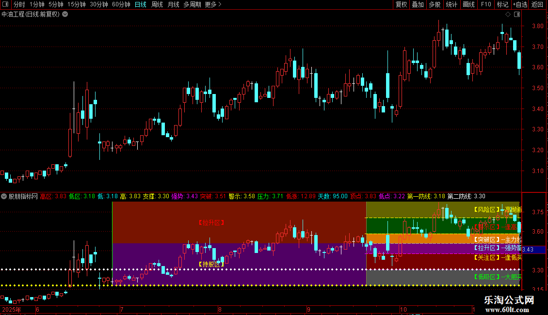 DRAWTEXT(CURRBARSCOUNT=N/4+5,GD-KJ*0.09,'【风险区】--高抛避险'),COLOR00FFFF;