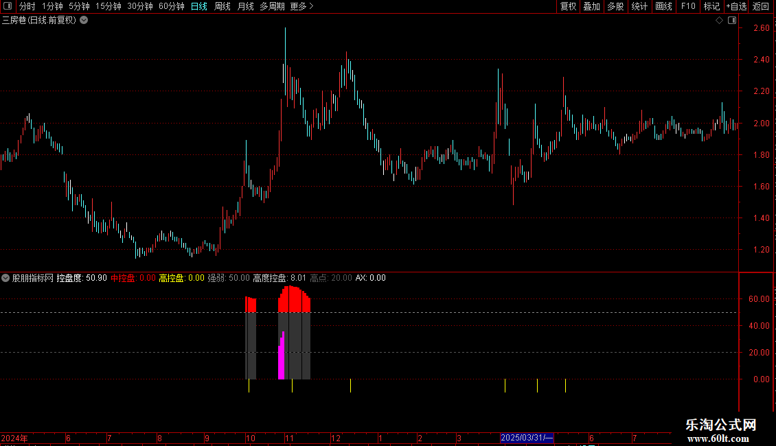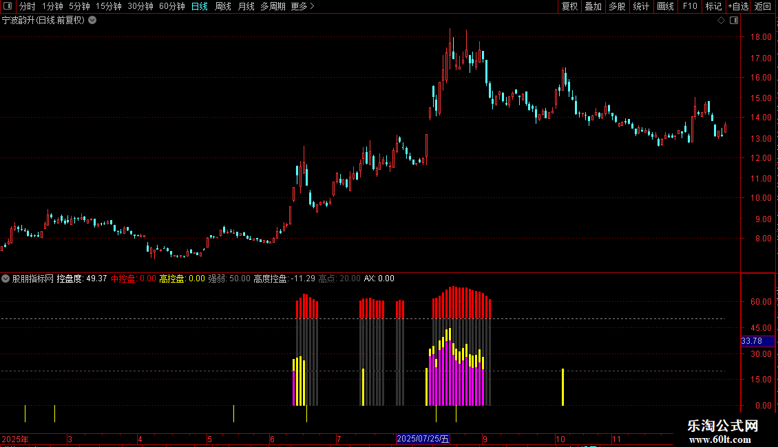 中控盘:IF(控盘度>=60,控盘度,0),COLORRED,NODRAW;