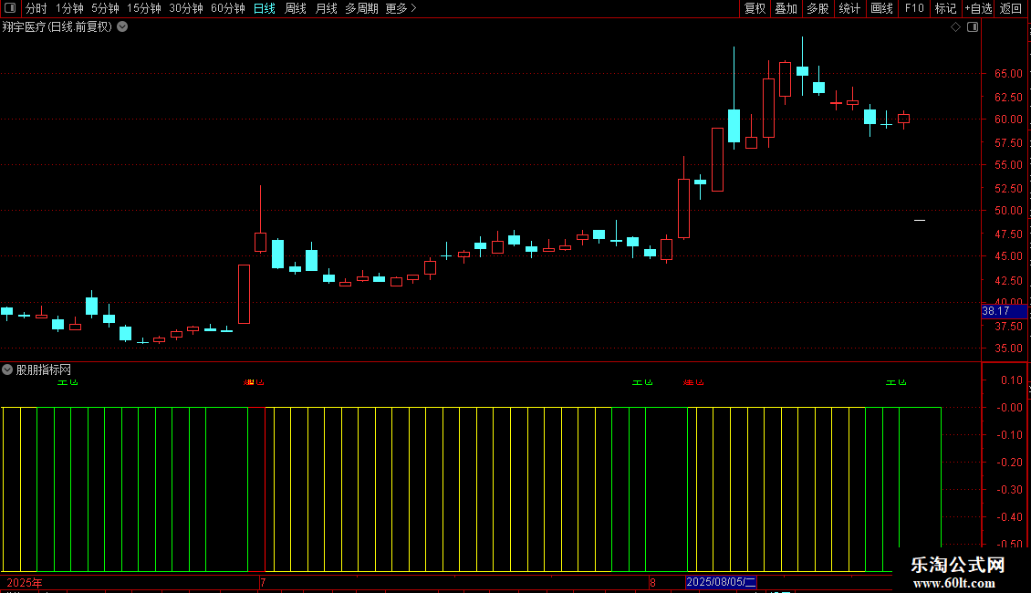 STICKLINE(DIF>0 AND DIF>DEA>0,0,-0.6,10,1),COLORYELLOW;