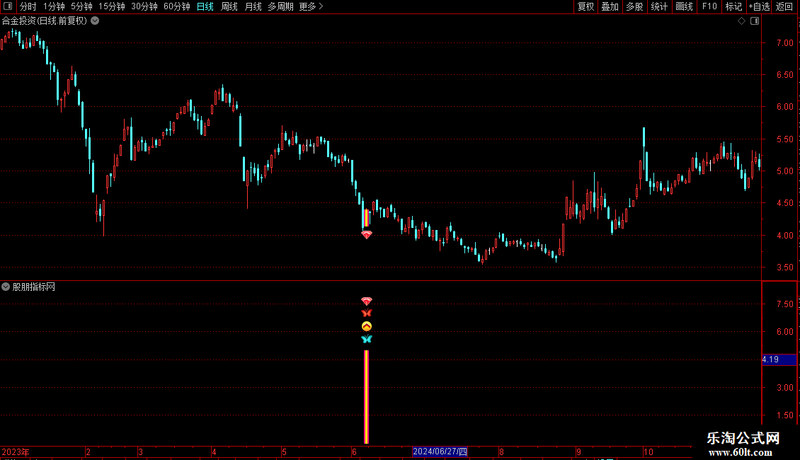 当满足核心条件时,公式会以粉黄双色K线+底部预警图标发出明确信号,辨识度极高。