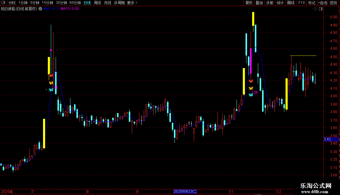 操作线:MA(CLOSE,5),COLORBLUE,LINETHICK1;