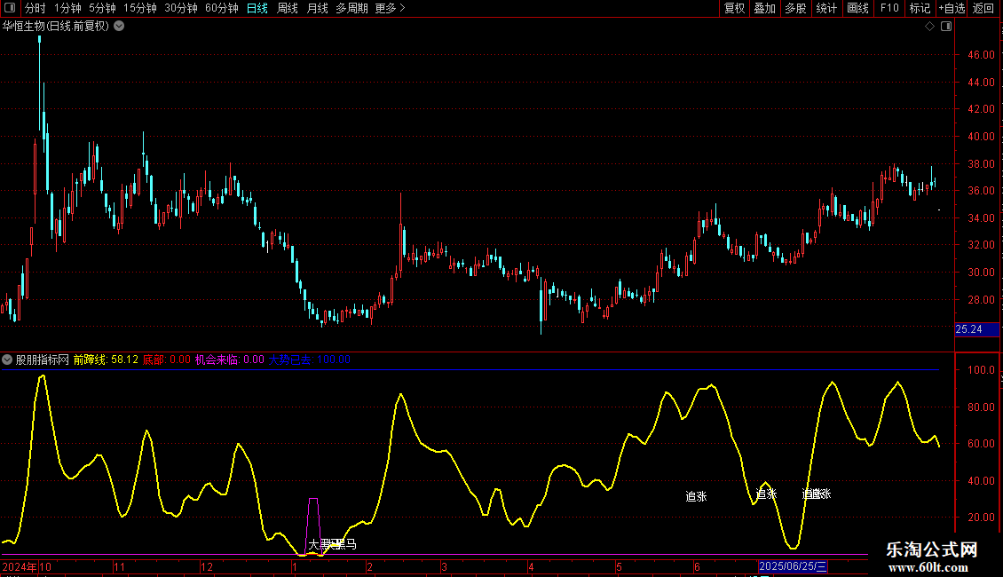 DRAWTEXT(CROSS(黑马线,A5)AND 前蹄线<80,黑马线,'追涨');