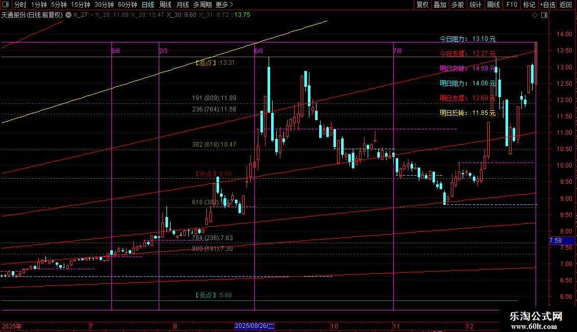通达信威廉江恩〖角度线组合〗支撑压力划线主图源码