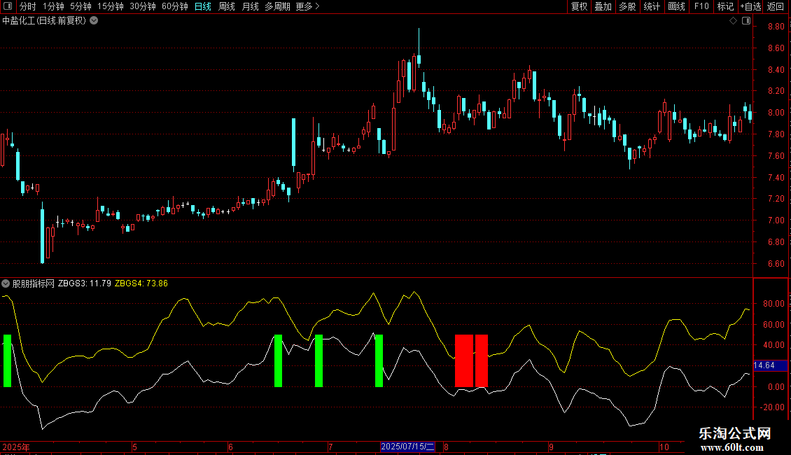 指标通过彩色柱状图直观显示信号: