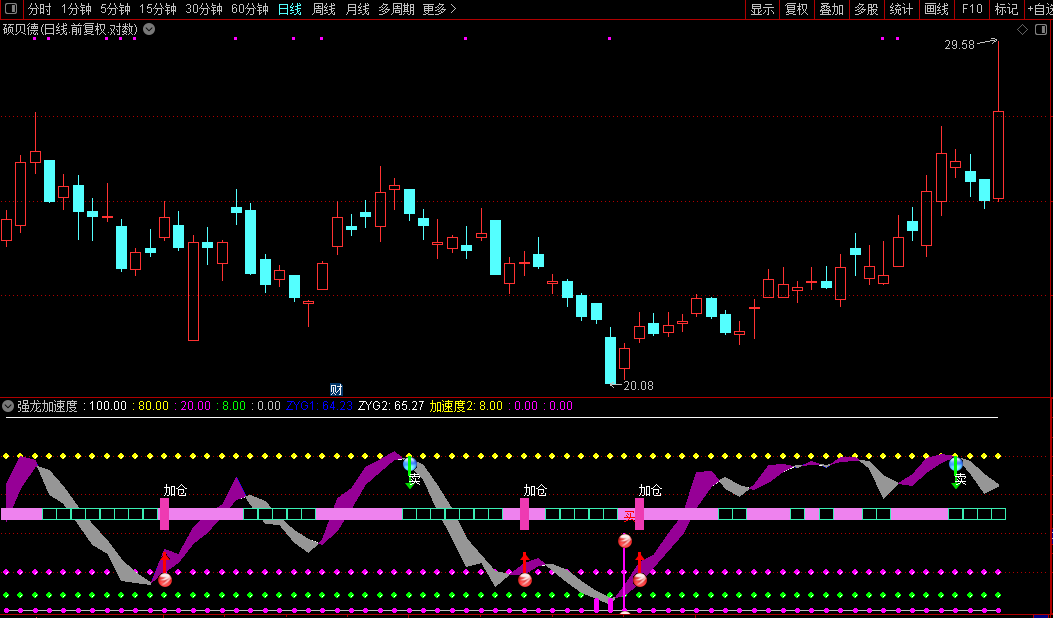 通达信【强龙加速度】副图/选股短期动量变化点短期趋势强度与买卖时机源码