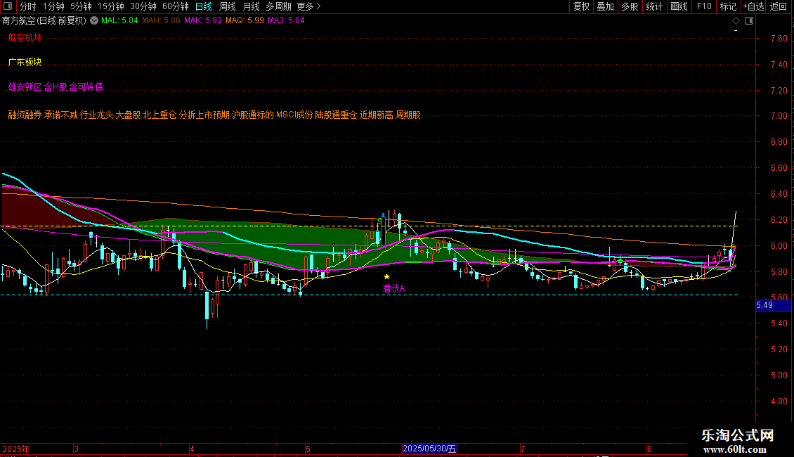 输出MA3:收盘价的60日简单移动平均,线宽为2,COLORFF00FF