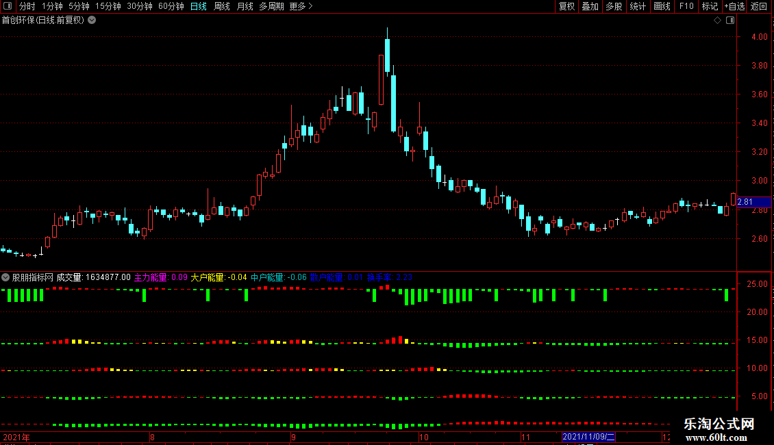 输出换手率:成交量(手)/当前流通股本(手)*100,线宽为0