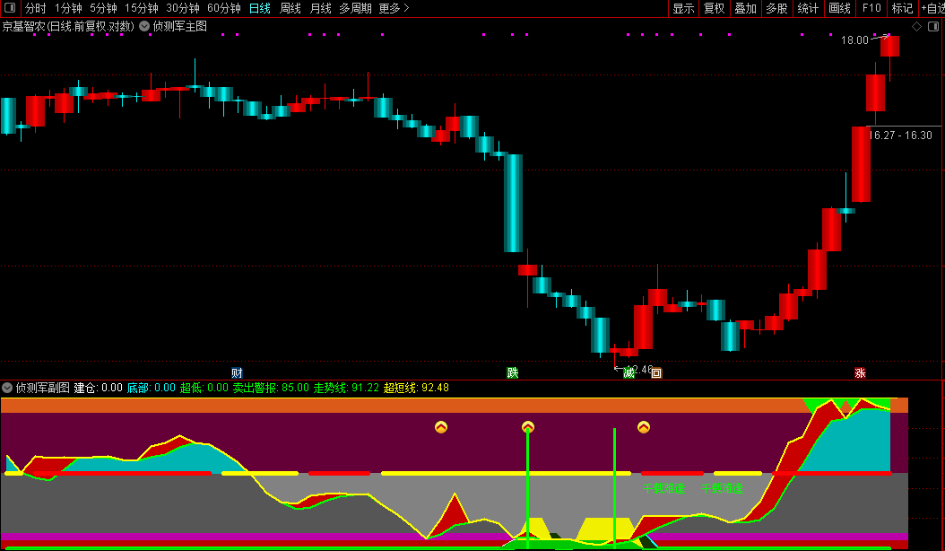 通达信【侦测军】主副/选研判股票多空态势与买卖时机潜在的转折点源码