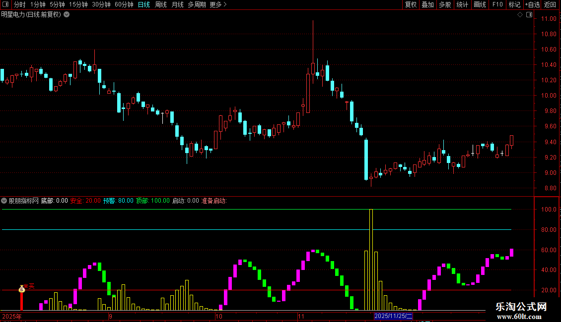 准备启动:DRAWTEXT(启动 AND COUNT(启动,10)=1,32,'准备启动'),COLORLIRED;