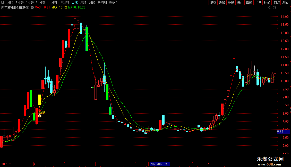 MA10:MA(CLOSE,10),COLORGREEN,LINETHICK1;