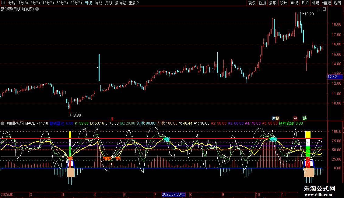 输出 平滑异同平均线: VAR6*5,COLORSTICK ,线宽为2
