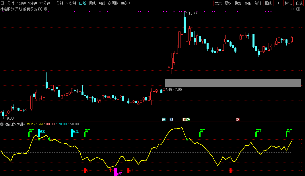 以资金流量指标(MFI)为核心,只有当价格上涨且成交量放大时,指标才会显著上升。这有效识别“虚涨”和“虚跌”,增加信号的真实性。