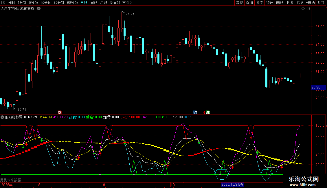 加码:IF(CROSS(J,REF(J+0.01,1)) AND BDDD AND BETWEEN(J,20,60),1,0),COLOR00FFFF,POINTDOT,LINETHICK0;