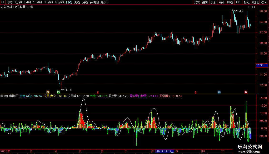 流量幅%:IF(((LLJX > 0) AND (ZJLL < 0)),ABS(QZJJ),IF((((LLJX<0) AND (ZJLL<0)) AND (LLJX<ZJLL)),(0-QZJJ),QZJJ)),COLORLIGRAY,NODRAW;