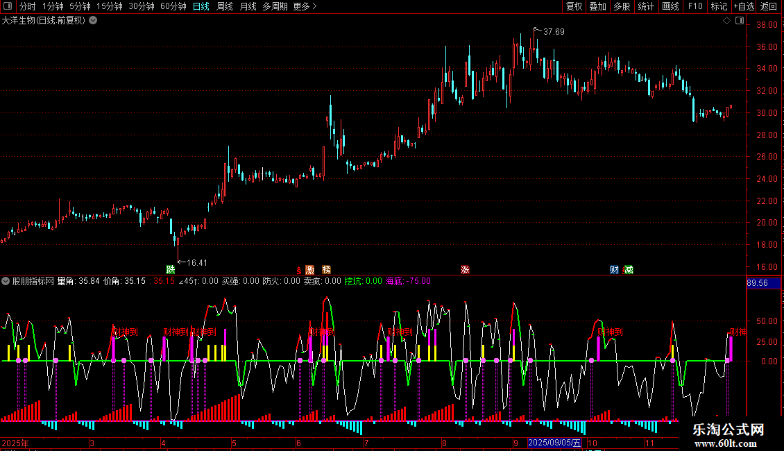 海底:IF(MA5角度<0-75,0-50,0-75),COLORFF00FF,LINETHICK2;