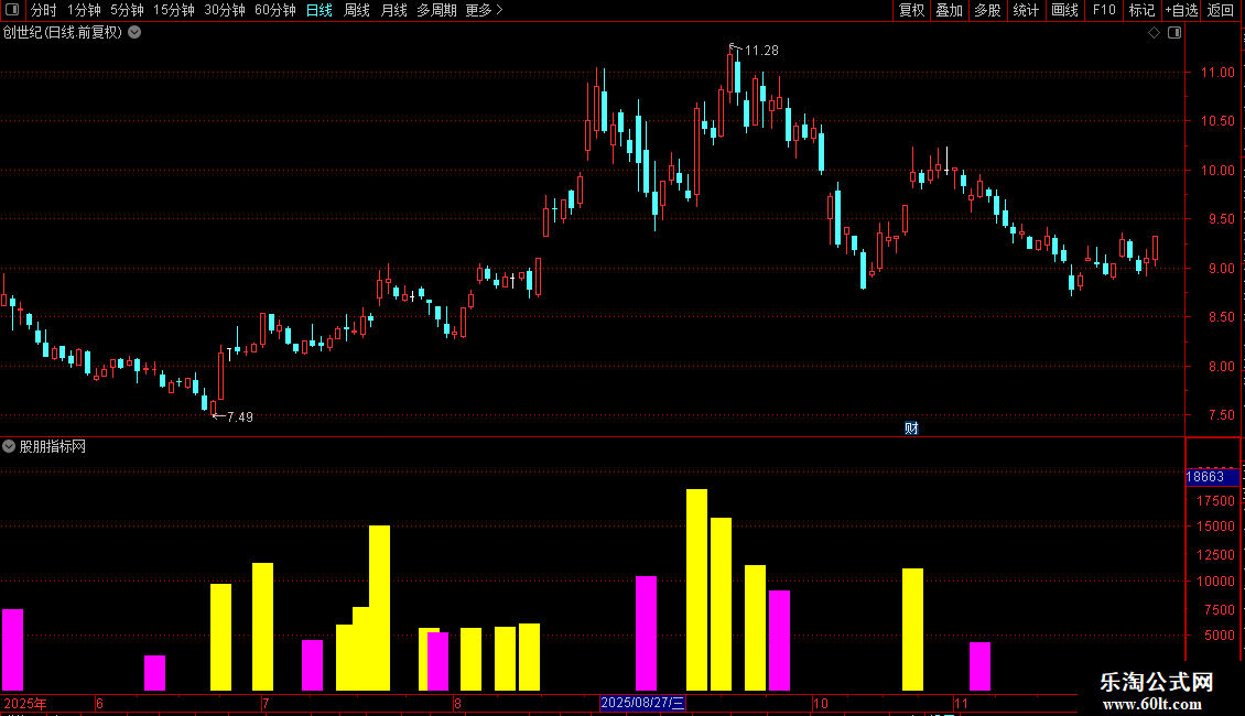 通达信成交量控制部分行情源码分享副图