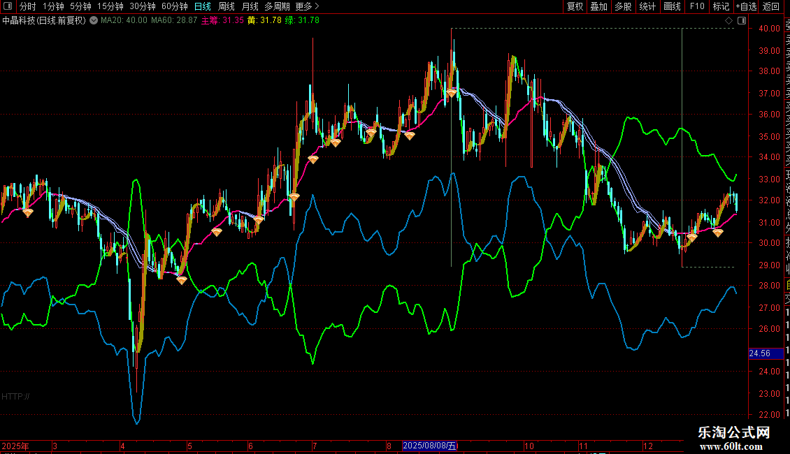 该指标核心包含高低线与资金力度线、散筹线、主筹导线。散筹和主筹用于精准衡量成交量的买入与卖出力度。当散筹大于主筹,市场处于上涨趋势;主筹大于散筹,则市场处于回调或下跌行情。当主筹高于前一日且绿线上穿黄线,同时收盘价高于散筹线时,即发出买入信号。