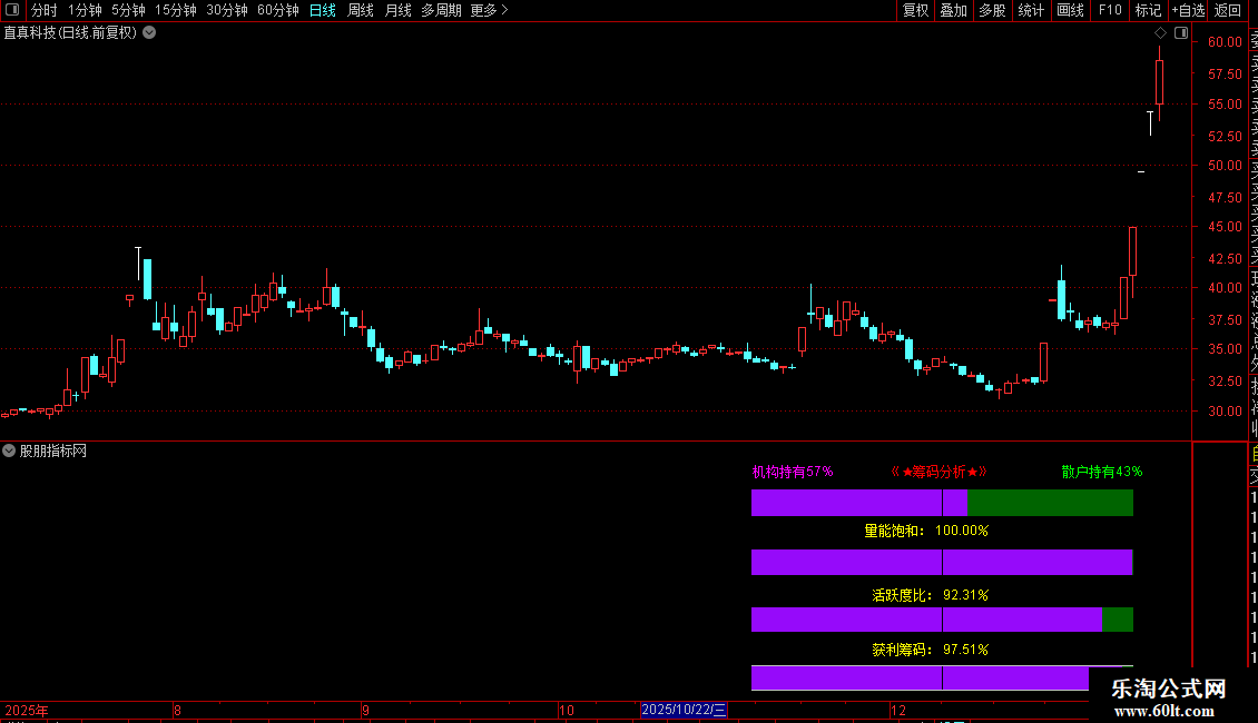 家人们是不是总看不懂筹码分布,搞不懂是“谁在买、谁在卖?”不知道当前筹码获利盘高不高?今天在这里云家就给家人们分享一个通达信版本的“筹码透市”指标,该指标把获利筹码占比、量能饱和度、交易活跃度、机构与散户的持仓占比等四大核心要点,用文字加进度条的方式,直观展示在屏幕右下角;有了这个指标后,家人们不用再去翻筹码峰指标,而是通过云家的“筹码透市”指标就能一眼就能看穿当前股价的筹码结构。