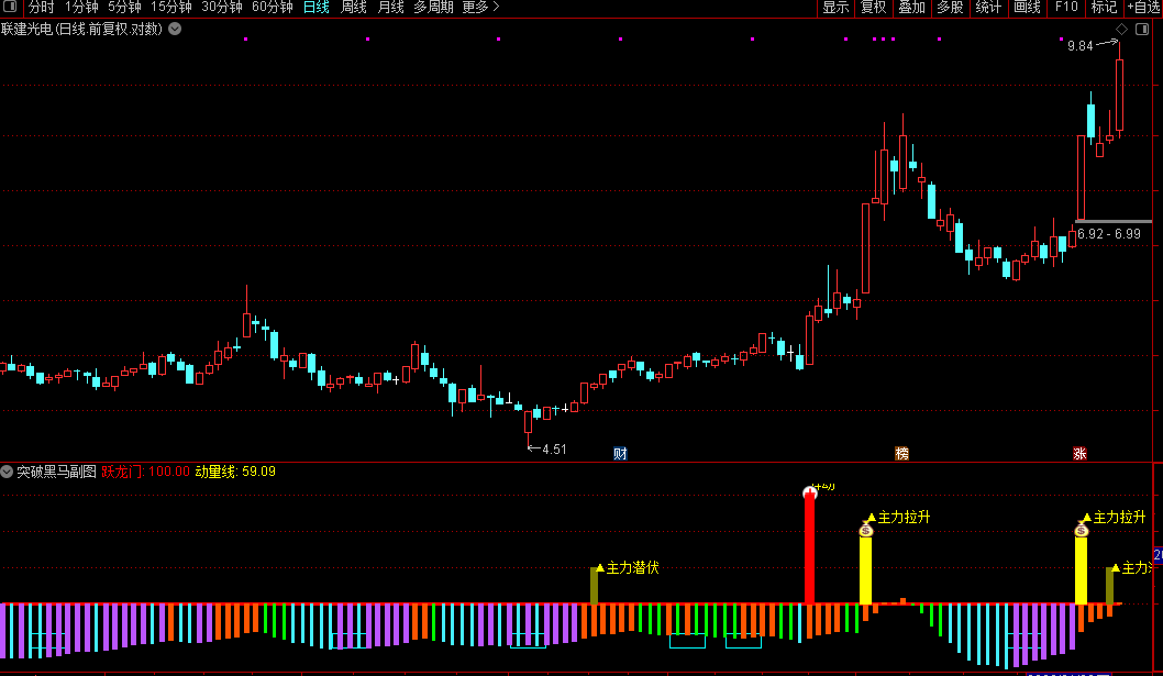 通达信【突破黑马】副图/选股指标捕捉黑马股启动前后的关键节点源码
