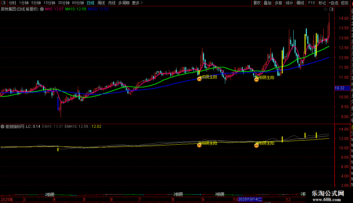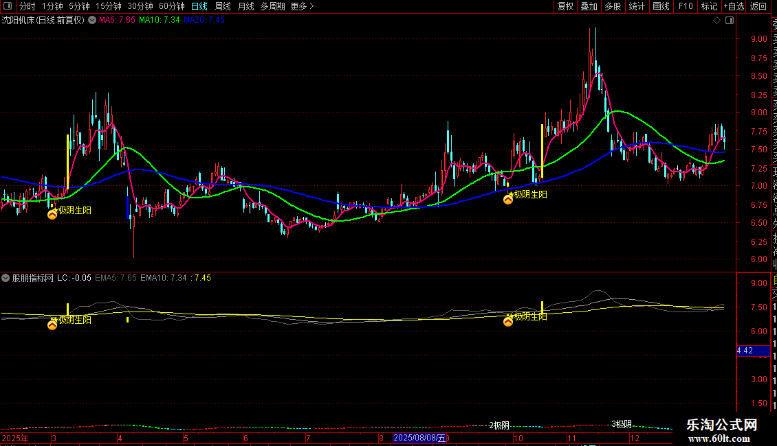 1. 主图:在K线图加载后,重点关注黄色“★极阴生阳”标注,结合涨停(黄K)、大跌(蓝K)辅助判断反转时机;