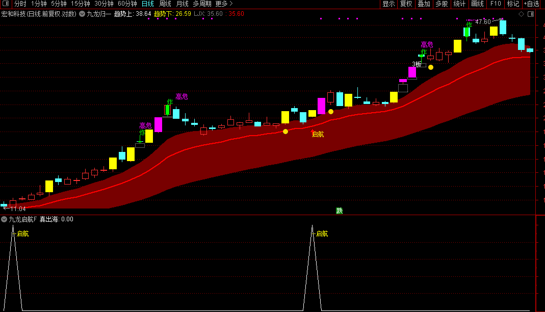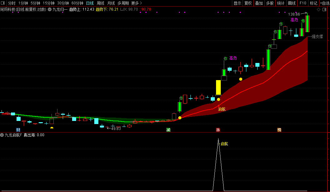 当背景为暗红色趋势带,且生命线为红色时,表明个股处于主升浪。策略为持仓待涨,有效解决拿不住单的问题。