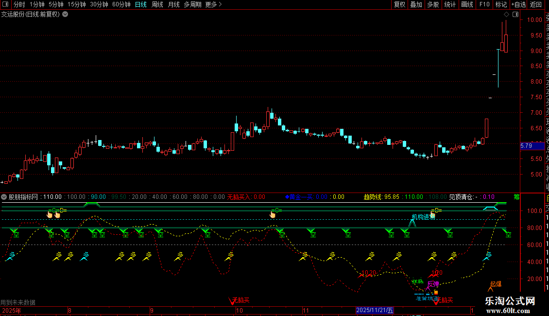 DRAWTEXT(FILTER(MR,10),-5,'无脑买'),COLORRED;