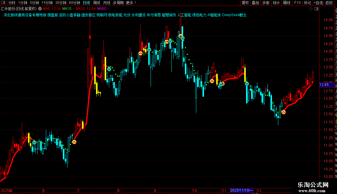 下拐:IF(VAR7>=VAR9,VAR7,DRAWNULL),COLOR33FF33,POINTDOT,LINETHICK4;