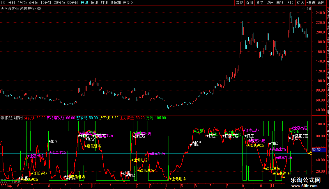 通达信『主力游资动向』副图,抄底线信号出现买入,爆发线出现注意是顶部