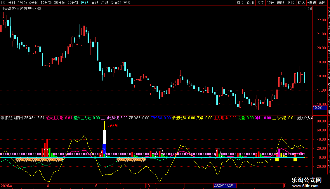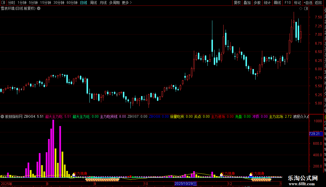 分享指标“主力现身”副图指标公式与公式