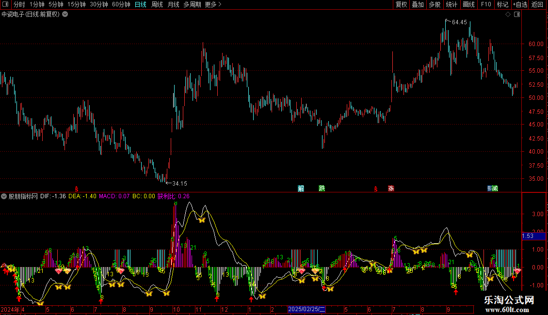 DRAWTEXT(BARSLAST(TJ)=34,MACD2,'34'),COLORYELLOW;