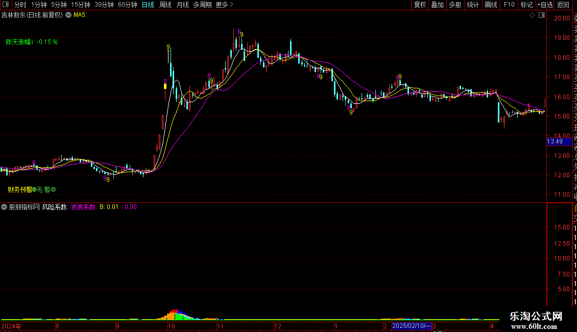 DRAWTEXT_FIX(1,0.07,0.94,1,'财务预警:'),COLORYELLOW;