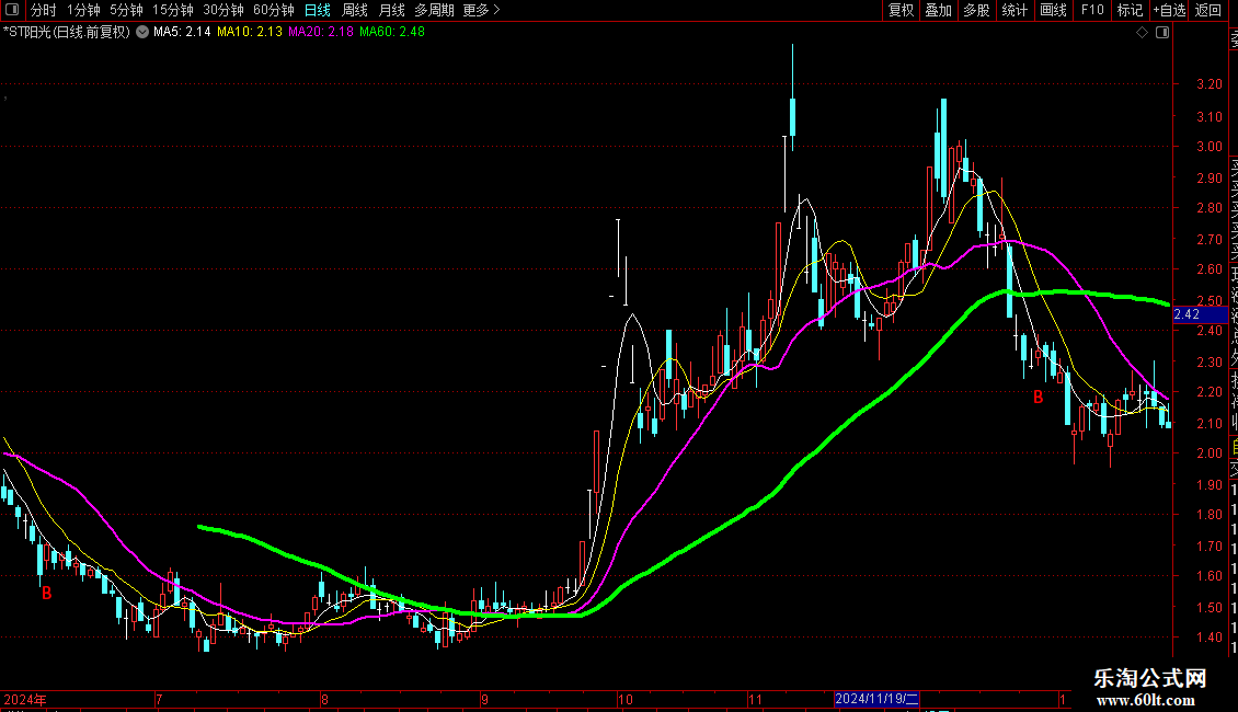 1 分析股票走势时,通过不同均线把握周期趋势:绿色线指示长线趋势,紫色线体现中线趋势,5日和10日均线反映短期波动。