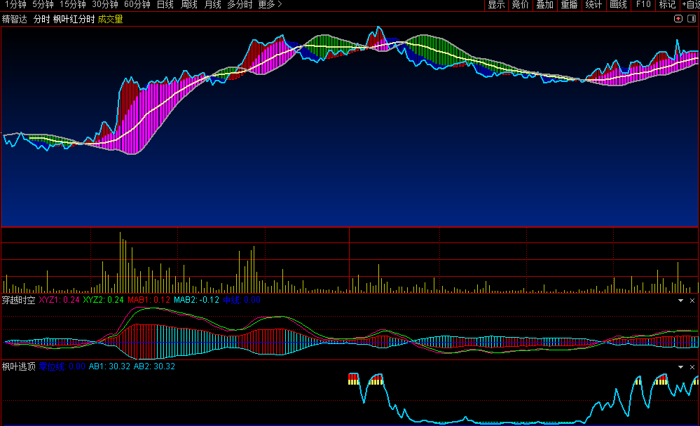 通达信【枫叶红】分时主副图提标提前知道分时拐向源码