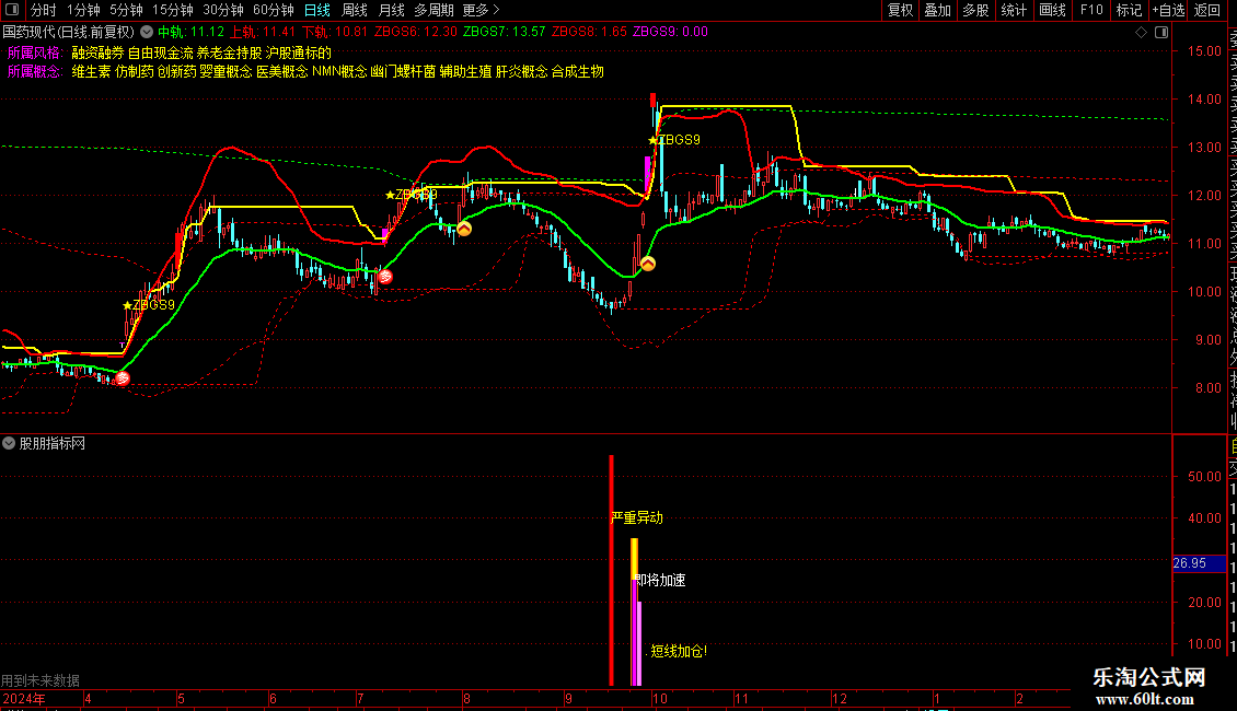 DRAWTEXT(FILTER(ZBGS81,15)=1,40,'严重异动')*ZBGS88,COLORYELLOW;