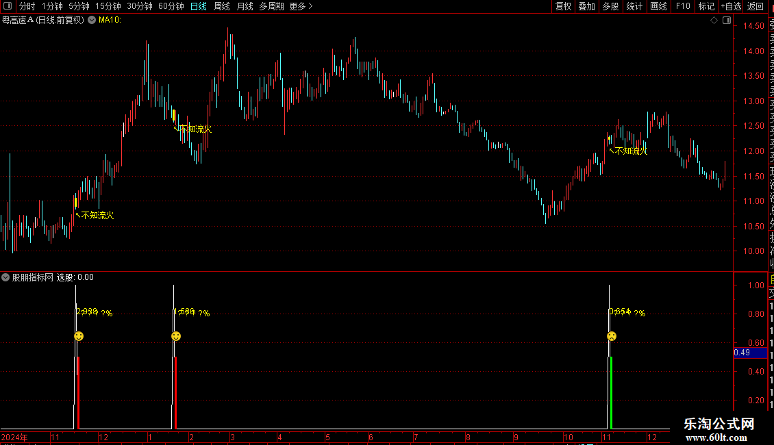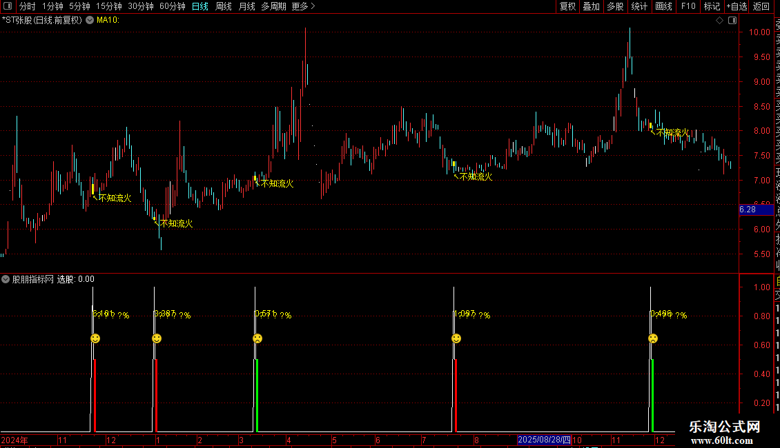 2. 文字标注:在信号K线下方显示"↖不知流火"提示