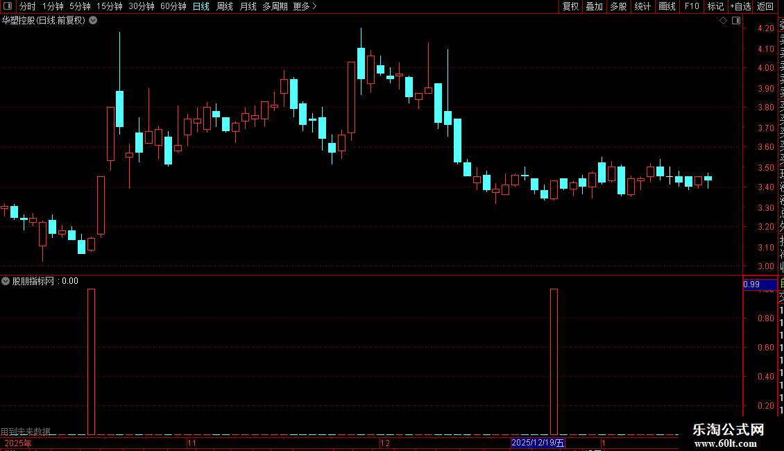 F:=100*(C-REF(C,1))/REF(C,1);今小昨:=IF(C<REF(O,1) AND F<0,1,0);S1:=今小昨;今小前:=IF(C<REF(O,2) AND F<0,1,0);S2:=今小前;A1:=S1=0 AND REF(S1,1)=1 AND S2=0 AND REF(S2,1)=1 AND CROSS(ZIG(3,3) ,REF(ZIG(3 ,3),1));A2:=S1=0 AND REF(S1,1)=1 AND S2=0 AND REF(S2,1)=1 AND CROSS(ZIG(3,5) ,REF(ZIG(3 ,5),1));A3:=S1=0 AND REF(S1,1)=1 AND S2=0 AND REF(S2,1)=1 AND CROSS(ZIG(3,10) ,REF(ZIG(3 ,10),1));A1 AND A2 AND A3,VOLSTICK; {选股要请删VOLSTICK即可}