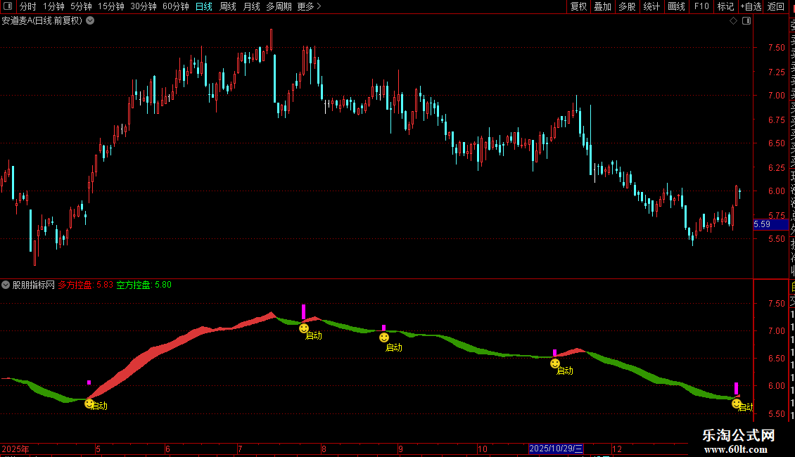 控盘启动精准预警:当紫色K线与笑脸图标同时出现,代表多方控盘力度增强,主升浪启动概率大幅提升,是即时布局的明确信号。
