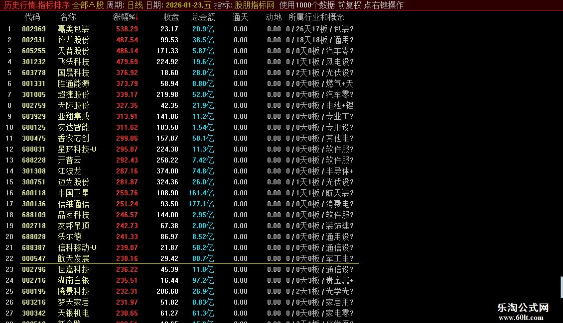 所属行业和概念:DRAWTEXT_FIX(C>0,1,0,1,STRCAT(M2,STRCAT(STRCAT(HYBLOCK,'+'),GNBLOCK))),COLORRED;