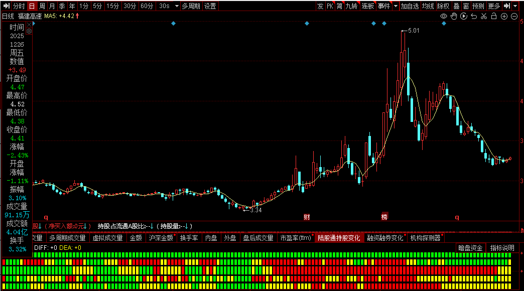 MV5赋值:成交量(手)的5日简单移动平均