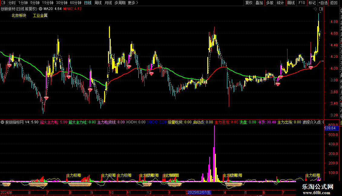 牛股密码:EMA(C,60),COLORRED,LINETHICK2;