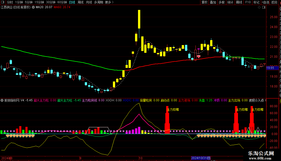 超大主力吃:IF(V4>=0,V4,0),COLOR7F00FF,LINETHICK2;